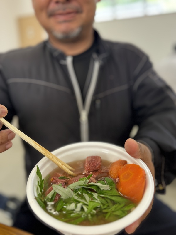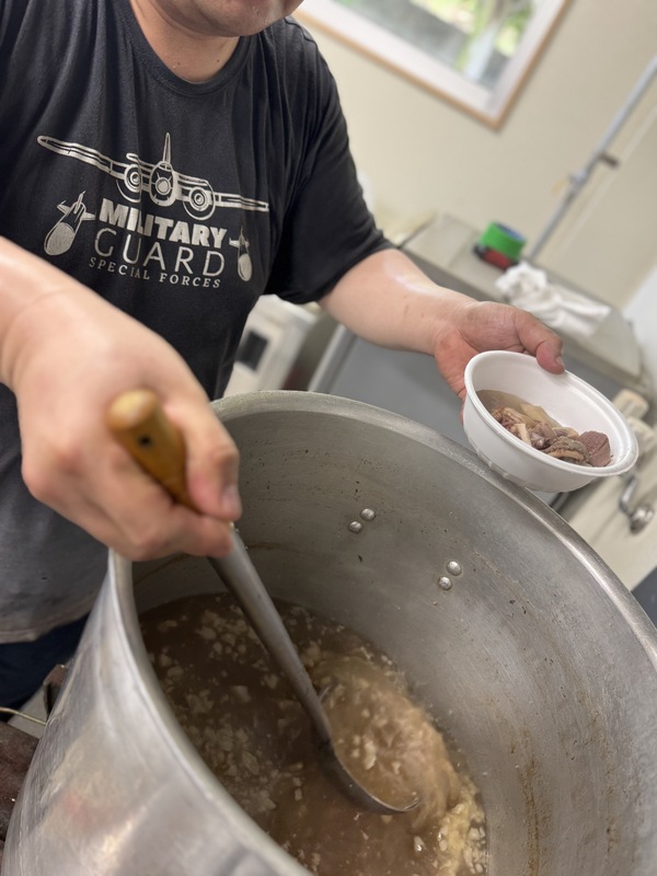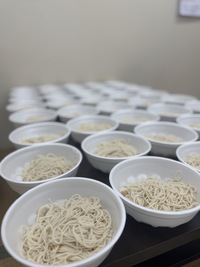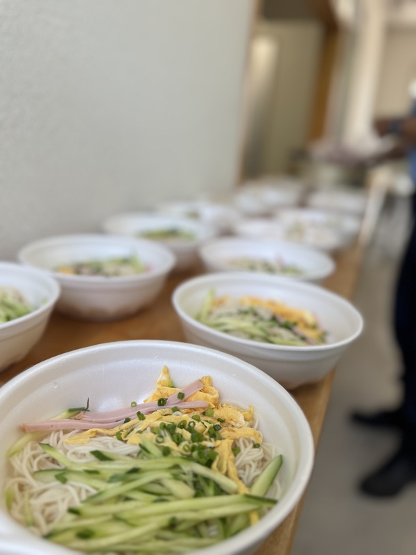 スタミナ満点「ヤギ汁」90人前「牛汁」60人前のど越しひんやりの「そうむspecial冷やし素麺」約50人前!!総務のお姉さまは午前5時から素麺の具材準備!総務ladies、暑い中働く従業員の皆さんのために食事の準備、頑張っていました~