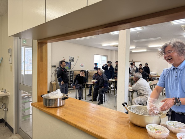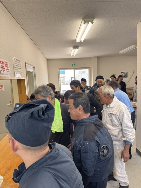 弊社従業員と下請けの協力企業さんのみならず、各船の船員さん達も大勢の皆さんが美味しそうに召し上がっていましたよ(⌒∇⌒)